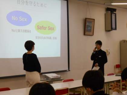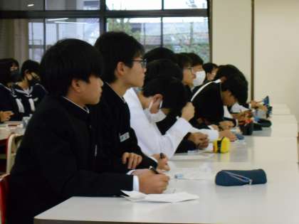 1・2年生 性に関する講演会(その2) 公開日 2023/11/13 更新日 2023/11/13 学校行事 日頃、新しい命と向き合われている産婦人科医の先生のお話を、真剣に聞く生徒の姿が見られました。個人差や違いを認める安心感や、生命の大切さ・自分の生き方を見つめる機会となったようです。