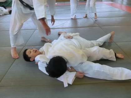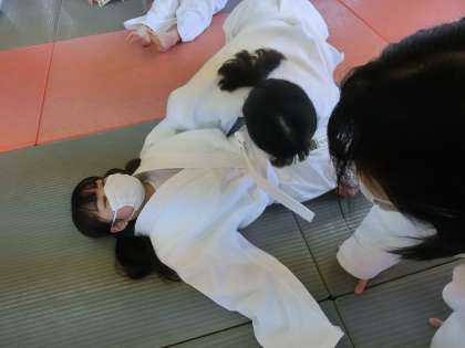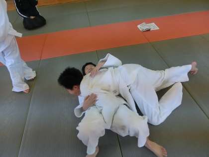 体育 柔道の学習です。横四方固めという技を教わりました。