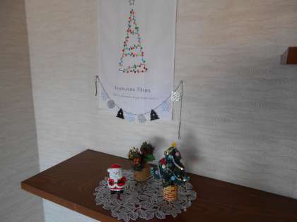 中・下:クリスマスの飾り付け、ここは学校のどこかな?