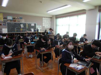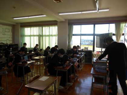 教室の様子です。 人権作文を読んでいます。 上:3A 下:3B