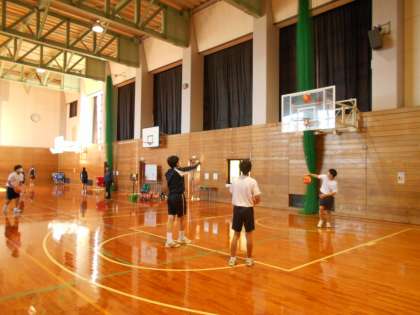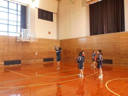 体育の様子です。バスケットボールのシュート練習をしています。