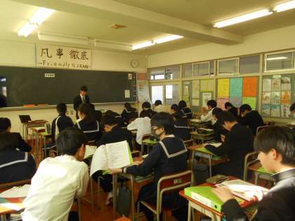 総合の時間「進路学習」の様子です。入試に向けての資料を読み合わせしています。