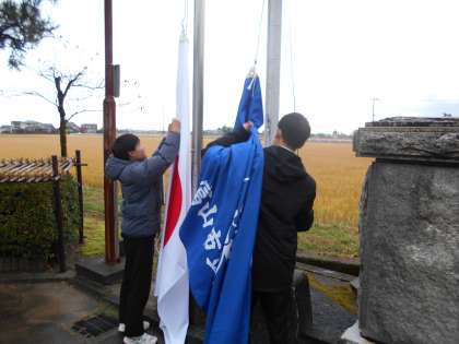 上:国旗・校旗の掲揚の様子です。