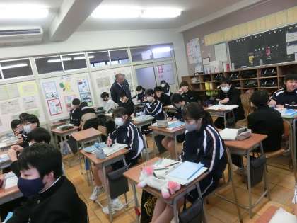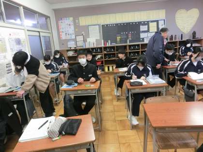 1A 学習の様子 公開日 2023/12/21 更新日 2023/12/21 学校生活 数学 コンパスと定規を使って作図をしています。今日は2つの円が交わってできる図形をかき、その図形にどんな特徴があるのかを見つけました。