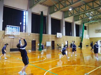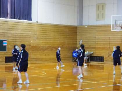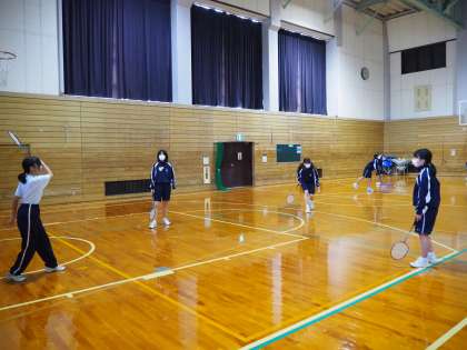 女子のバドミントンの様子です。楽しくペアで打ち合いしました。