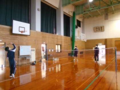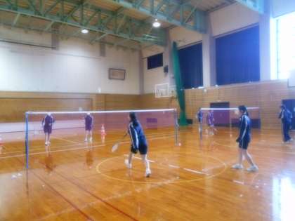 体育の様子です。バスケットボールとバドミントンのどちらかをを選択して活動しています。
