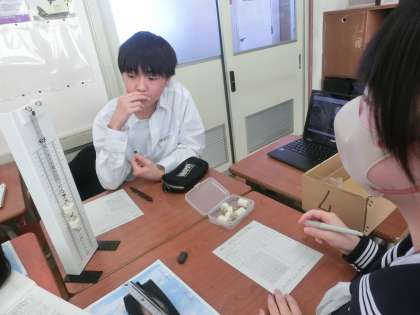 理科 力の大きさとばねののびの関係を調べる実験をしました。