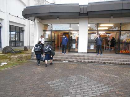 登校の様子です。 周辺の雪は、解けてすっかりなくなりました。