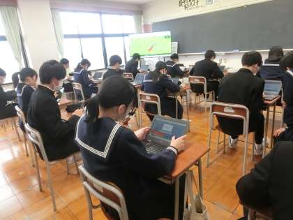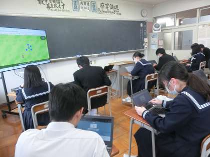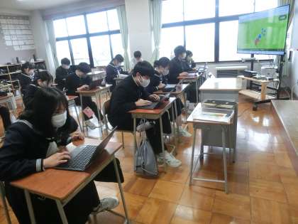 英語 三年間の英語の総まとめができる陣取りゲームをしています。