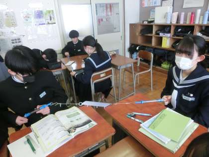 理科 1つの物体についてはたらく2つの力の関係について調べる実験をしています。