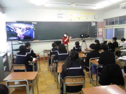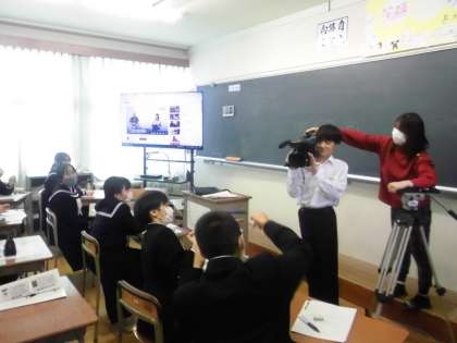 「13歳の学び」放送製作 公開日 2024/01/27 更新日 2024/01/27 1年生 株式会社とやまソフトセンターで勤務されている方による講座の様子です。 講師の方が実際にされた取材や放送の様子の動画を視聴させてくださったときは、生徒は食い入るように見ていました。また、カメラを手に持ってカメラワークも体験させていただきました。 「大変なことも多いけれど、それ以上にやりがいがある」というお言葉に心を打たれている生徒が多かったようです。