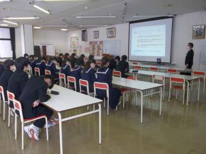 北陸銀行から専門家をお招きし、金融に関するお話を聞かせて頂きました。 生徒たちは頷きながら聞いていました。