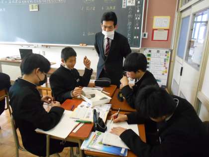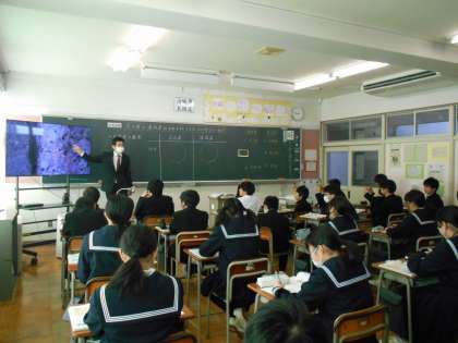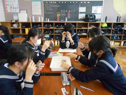 理科は、火山岩と深成岩について学習しています。ルーペを使って観察しました。