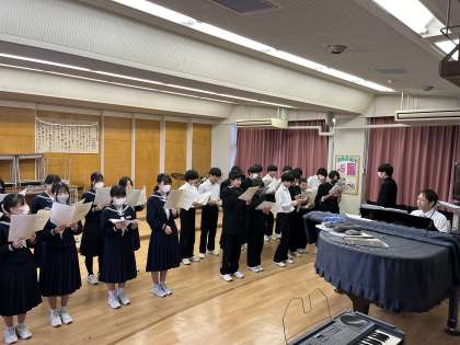 1・2年生 合同音楽 公開日 2024/02/22 更新日 2024/02/22 1年生 卒業式に向けて1・2年生の合同での合唱練習が始まりました。 みんなが一生懸命歌っていて、今から当日が楽しみです。