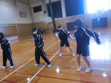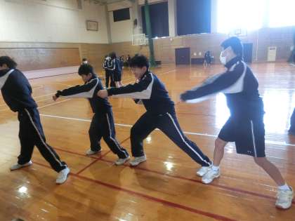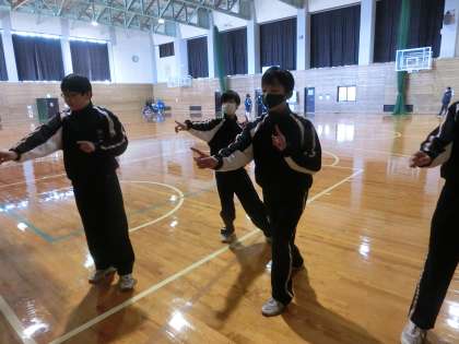 体育 グループに分かれて、和気あいあいとダンスに取り組んでいます。