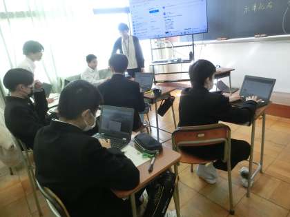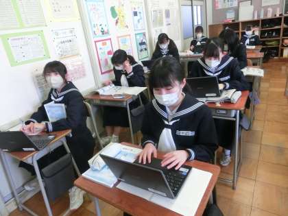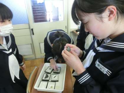 理科 示相化石と示準化石を観察し、それらの化石についてさらに詳しくクロームブックで調べました。