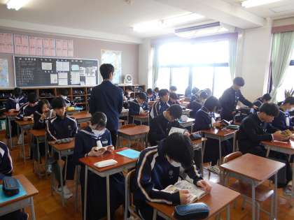 上:生徒会選挙運動2日目です。 中:1Aです。 下:2Aです。