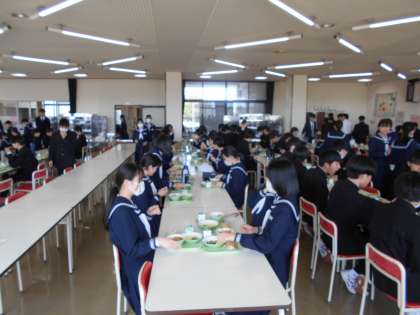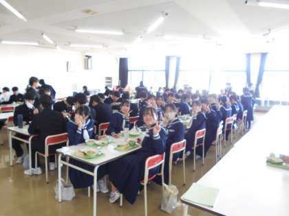 ランチルーム給食 公開日 2024/03/11 更新日 2024/03/11 学校生活 久しぶりに全校生徒がランチルームで給食の時間を過ごしました。 明日までの2日間です。 全校ランチルーム給食で、3年生との思い出を振り返りましょう。
