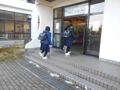 登校の様子です。 3年生が卒業して、寂しく感じる朝の様子でした。
