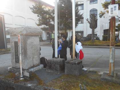 上:国旗・校旗の掲揚の様子です。