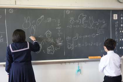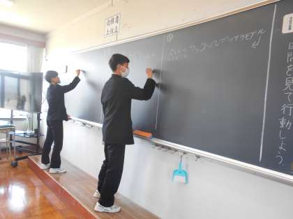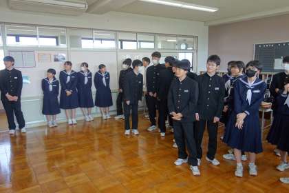 学活の時間に人間関係づくりとして「しりとり」や「名前をあつめよう」をしました。生徒たちは、どちらも班で協力して活動していました。メンバーは変わりませんが、互いの新たな一面を発見することができました。