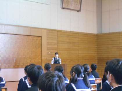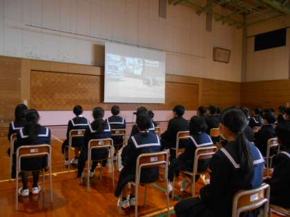 交通安全教室 公開日 2024/04/09 更新日 2024/04/09 1年生 警察の方を招いて、自転車の乗り方や登下校の交通について指導していただきました。 ビデオや講話から、これからの登下校や交通安全について考える機会となりました。