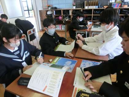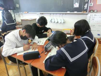 道徳 グループになって題材文を読んで感じたことを発表しあいました。
