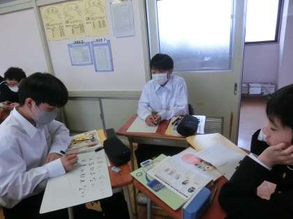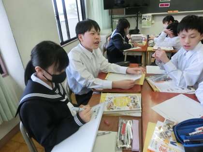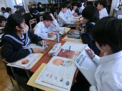 家庭 「なぜ食事をするのか」について、グループになって話あっています。