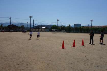 保健体育の時間に、スポーツテストの50m走のタイムを計測しました。 自己ベストが出て喜ぶ姿が多く見られました。
