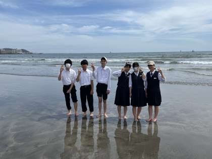 由比ヶ浜海岸で青春してます。 三成中参上!