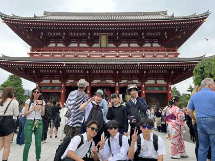 東京班別学習 公開日 2024/05/16 更新日 2024/05/16 3年生 浅草寺 雷門 混雑具合がすごいです。 外国人観光客の皆さんにも人気の観光スポットです。 外国の方の記念撮影を手伝ってあげる体験もできました。