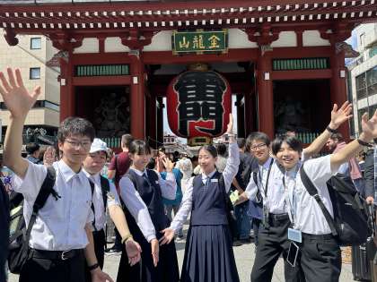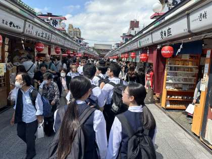 浅草の雷門に到着しました。午後になって日差しも出てきて、人混みも想像以上です。