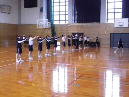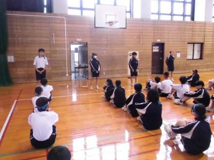 昨日の練習に比べて声がよく出ていました。また、振り付けの練習を重ねるうちに、どちらの団も一体感が出てきたように感じました。明日の1年生との合同練習で、よい見本を示してほしいと思います。