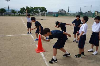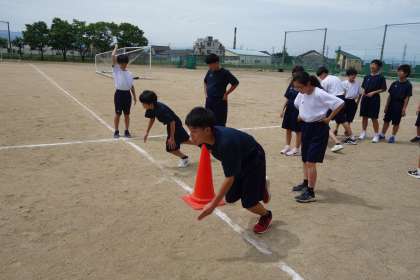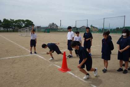 体育の授業で50m走の測定をしています。 どの生徒も頑張って走っていました。