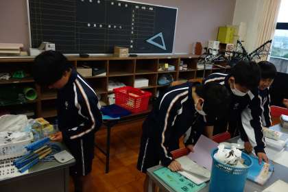 作法室の片付けと平行して、生徒会室も片付けをしています。 必要な物と不要な物を整理しています。