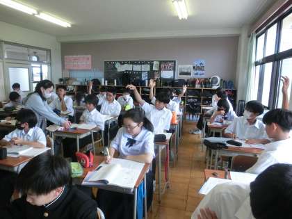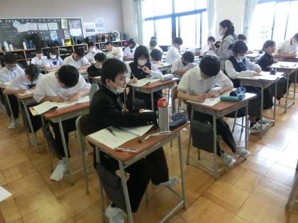 国語 『大根は大きな根?』という説明文を読んでいます。段落ごとに文章を序論、本論、結論に分けて、要約しています。