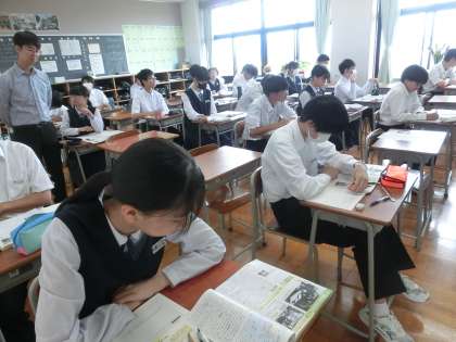 社会 教育実習生による授業です。戦後の日本についての学習でした。