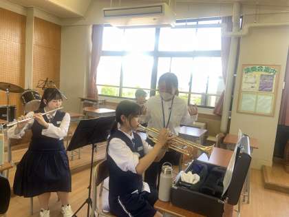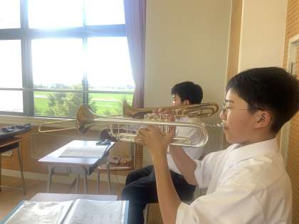 吹奏楽部 練習風景 公開日 2024/06/10 更新日 2024/06/10 部活動 吹奏楽部の練習の様子です。 1年生部員も慣れてきて、いい音が出るようになってきました。今は、サマーコンサートに向けて練習中です。