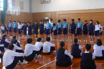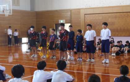 富山市中学校総合選手権大会 壮行会2 公開日 2024/06/10 更新日 2024/06/10 学校行事 壮行会の写真の続きです。 1枚目:卓球部 2枚目:陸上競技部 3枚目:バスケットボール部(水橋中と合同)
