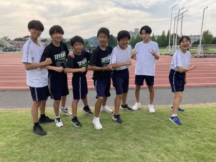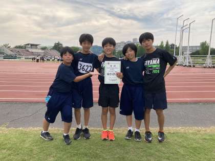 市中学校総合選手権大会 陸上競技(その1) 公開日 2024/06/17 更新日 2024/06/17 部活動 競技、補助員の仕事、そして仲間の応援を全力で頑張りました。 1年男子100m 1位 1年男子走幅跳 5位、7位 1年男子4×100mリレー 5位 以上の種目で入賞し、県選手権大会、および、通信陸上大会の出場権を獲得しました。おめでとうございます。 応援してくださった保護者の皆様、ありがとうございました。