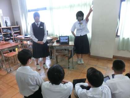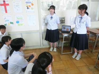 国語 プレゼンテーションの学習をしています。3つのグループに分かれて、それぞれ友達のプレゼンを聞き合いました。