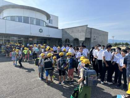 小中合同あいさつ運動 公開日 2024/07/03 更新日 2024/07/03 生徒会・専門委員会 三成小学校と合同で、あいさつ運動を行いました。 三成小学校玄関前と旧上条小学校前バス停に分かれ、明るいあいさつを交わしました。 とても気持ちのよい朝でした。