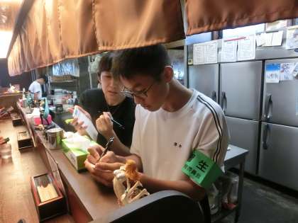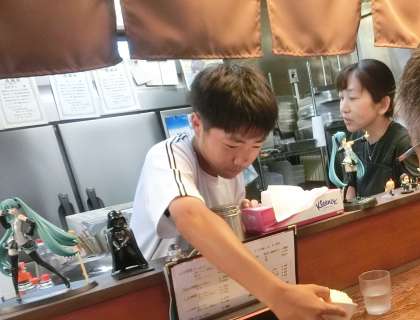 「社会に学ぶ『14歳の挑戦』」2日目【楓の花】 公開日 2024/07/09 更新日 2024/07/09 2年生 お店はお客さんがいっぱいです。注文の取り方を丁寧に教えていただき、真剣に取り組んでいます。おすすめのラーメンを質問すると「みそ野菜ラーメンです」と笑顔で答えてくれました。