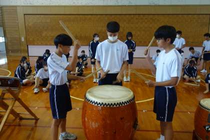 3A 三成太鼓の練習 公開日 2024/07/10 更新日 2024/07/10 3年生 3年生は、7/27(土)の水橋はし祭り、8/3(土)の上条ふれあい広場で三成太鼓を演奏します。 出演に向けての練習が今日から始まりました。 入学式で演奏して以来なので、まずは太鼓の感覚を思い出しながら練習しています。