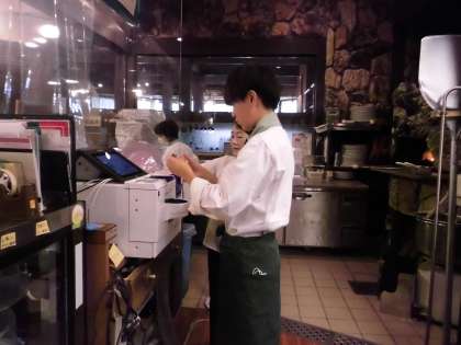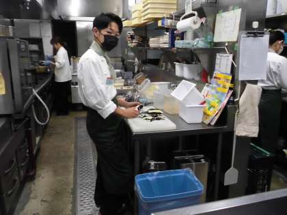 「社会に学ぶ『14歳の挑戦』」3日目 【珈琲哲学】 公開日 2024/07/10 更新日 2024/07/10 2年生 オープン前にナスの皮むきをしたり、レジの準備をしたりしました。 2人とも制服がとても似合っていますね。