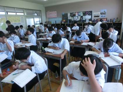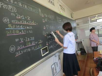 数学 1学期最後の数学の学習で文字式のまとめを行いました。項と係数の違い、分配法則のやり方を忘れている人が多いようです。夏休みのうちにしっかり復習しておきましょう。