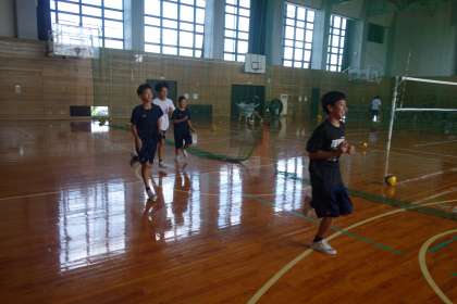 陸上競技部 活動の様子 公開日 2024/07/26 更新日 2024/07/26 部活動 暑さ指数(WBGT)が高いため、屋内での活動となりました。 体育館内を走りながら、体力づくりに取り組みました。