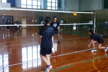 部員3人と少ないながらも、レシーブやアタックの練習を熱心に行っていました。