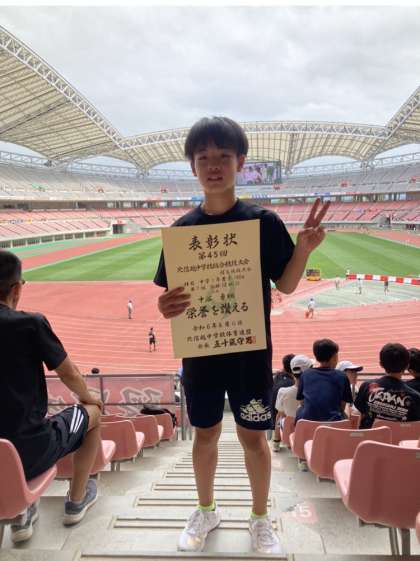 北信越中学校総合競技大会 陸上競技【結果報告2】 公開日 2024/08/06 更新日 2024/08/06 部活動 1年男子100m決勝 12秒35 7位 北信越7位と大健闘しました!お疲れ様でした。