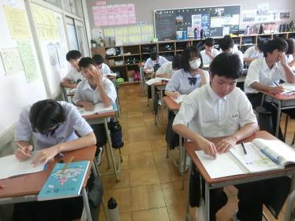 数学 方程式の文章問題に取り組んでいます。問題文を読み取り、何を求める方程式を立てればよいのかに悩んでいる生徒が多いようです。繰り返し練習して問題に慣れることが大事です。